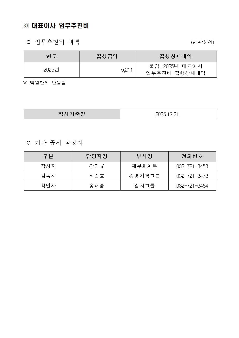 대표이사 업무추진비(2025.12.31. 누적 기준)
