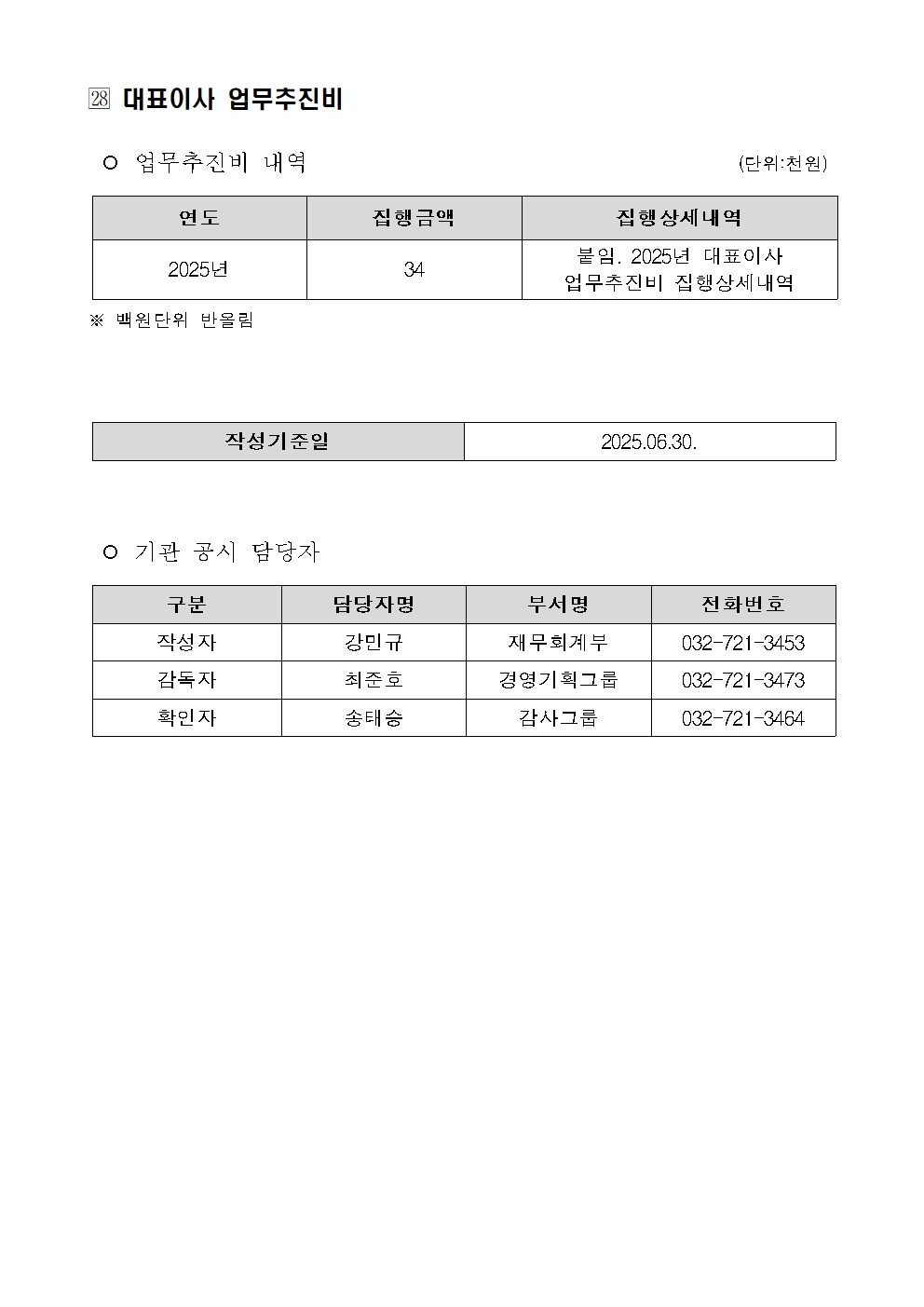 대표이사 업무추진비(2025.6.30. 누적 기준)